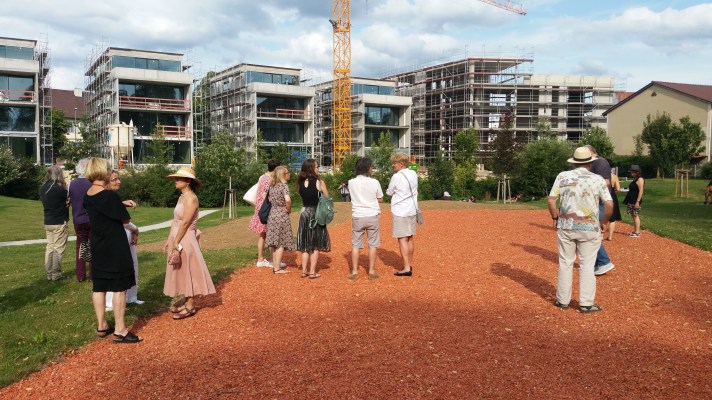 Die Ausgleichsfläche besitzt den Grundriss der vom Kunstbeirat seit 1979 bespielten Städtischen Galerie im Kornhaus (EG) und entstand aus dem Schutt von Abrisshäusern.