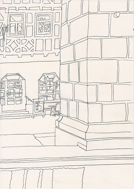 Weiterführung der mehrphasigen zeichnerischen Chronik des Kornhaus-Umbaus in Kirchheim unter Teck.