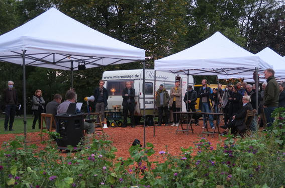 Für die Umbauphase wurde von den Berliner Künstler:innen Dellbrügge & de Moll im Bürgerpark/Hain der Kulturen eine Ausgleichsfläche geschaffen, die dem Grundriss der Städtischen Galerie im Kornhaus entspricht und dem Kunstbeirat als Veranstaltungsort dient.